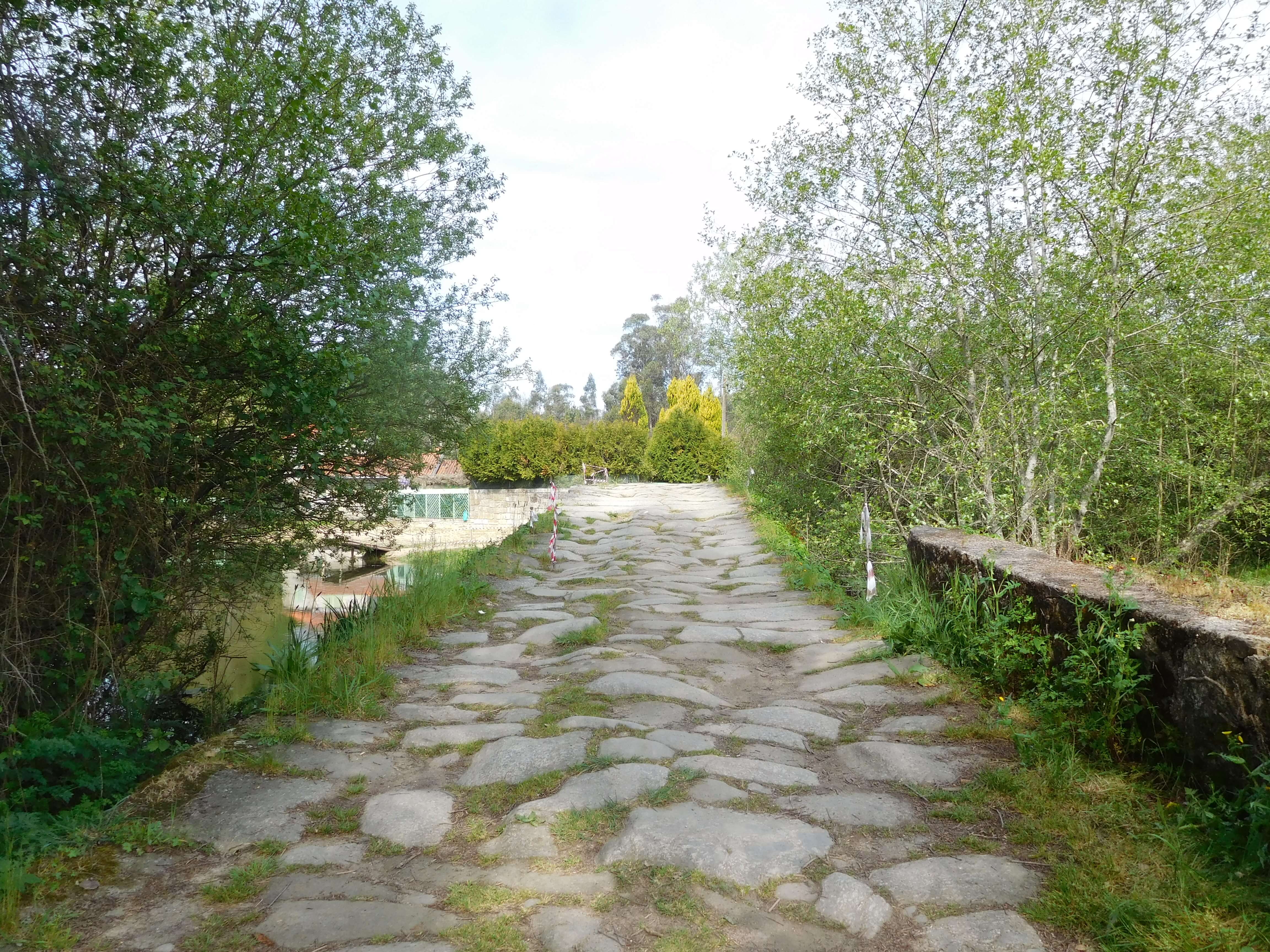 We began to feel like we were really close to the city, but Carolin’s knee started to hurt pretty badly. Christian benevolently carried both of their packs the rest of the way (he’s her hero)! Little did we know how far that would end up being: we all kept thinking that the city would be around every bend in the road. Just one more kilometer… Just one more kilometer… It felt like forever until we reached the stream leading into Ponte de Lima, practically dragging our tired bodies through the flea market that was happening on the river bank.